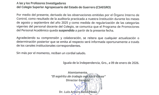 El Colegio Superior Agropecuario del Estado de Guerrero, como Órgano Administrativo Desconcentrado de la Secretaría de Agricultura y Desarrollo Rural, encargado de proporcionar servicios educativos en la rama agropecuaria, a nivel superior y medio superior...