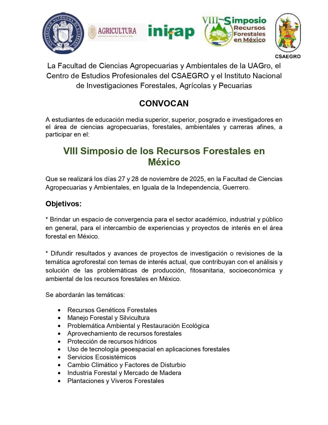 Documentos: Convocatoria VIII Simposio de los Recursos Forestales en México Triptico VIII Simposio de los Recursos Forestales en MéxicoImágenes: